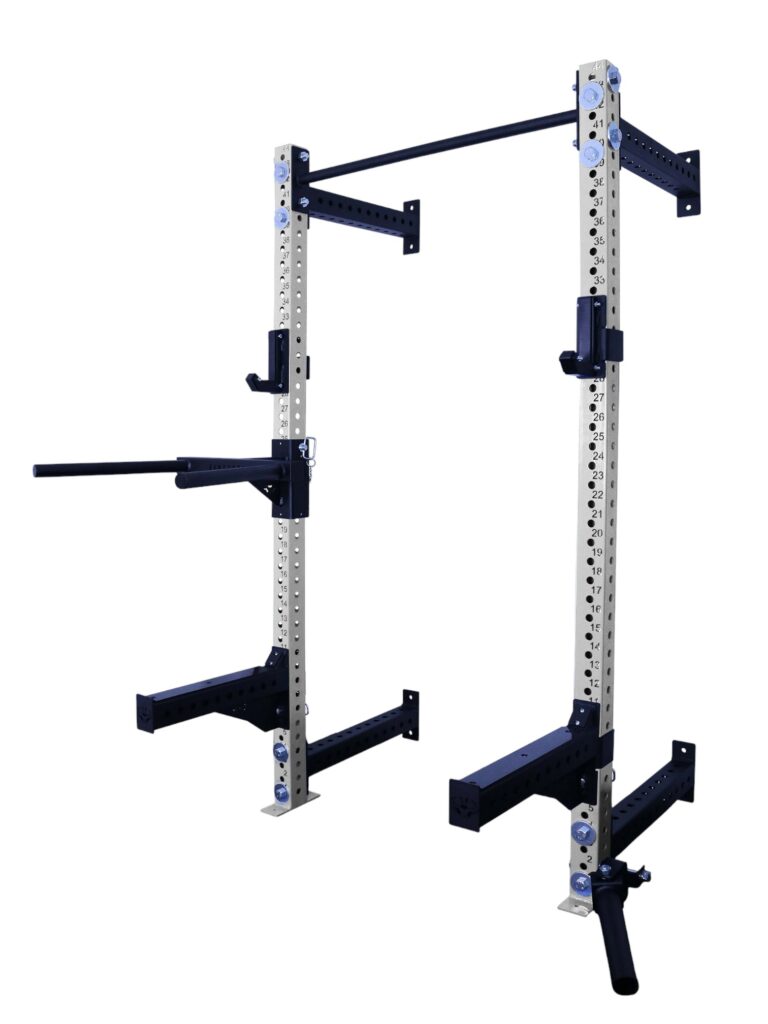 Wall Rack z 4 łączeniami do ściany jest przeznaczony dla osób, które nie chcą montować klatki do podłogi. Dzięki 4 łączeniom nie ma takiej potrzeby. W przypadku klatki z dwoma łączeniami montaż do podłogi jest wymagany.