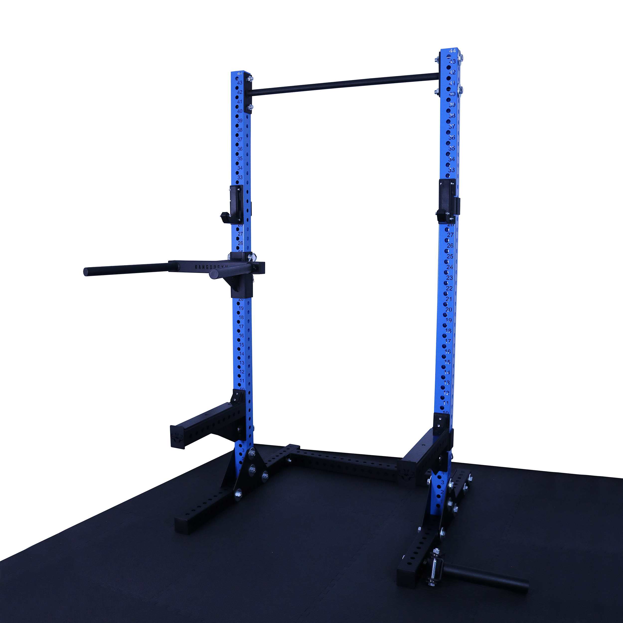 Seria KGM została stworzona dla osób, które chcą otrzymać kompletną, w pełni funkcjonalną klatkę treningową od razu po rozpakowaniu, bez konieczności dokupowania dodatkowych akcesoriów. To gotowe zestawy oparte na najmocniejszych profilach 80x80x3 mm, wyposażone w kluczowe akcesoria do treningu siłowego i funkcjonalnego, oferowane w korzystniejszej cenie niż zakup każdego elementu osobno. Precyzyjnie wypalane laserowo otwory z numeracją, rozmieszczone co 50 mm, zapewniają pełną swobodę regulacji i dopasowania ustawień do wzrostu, techniki oraz rodzaju ćwiczeń. Masywna konstrukcja, oparta na czterech trapezach, gwarantuje wysoką stabilność i bezpieczeństwo nawet podczas ciężkich treningów.