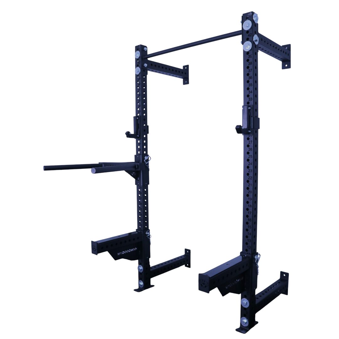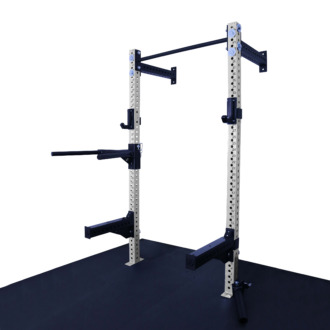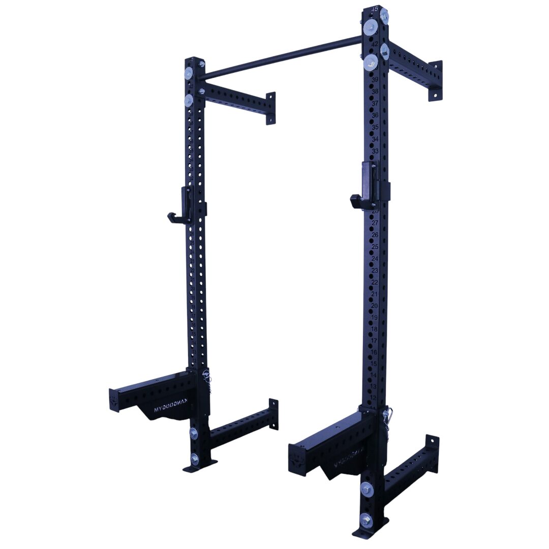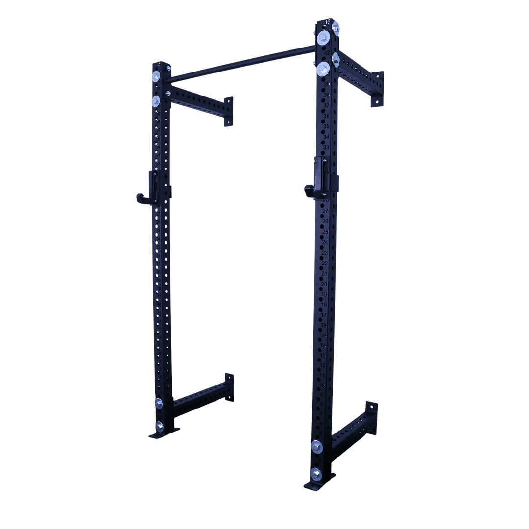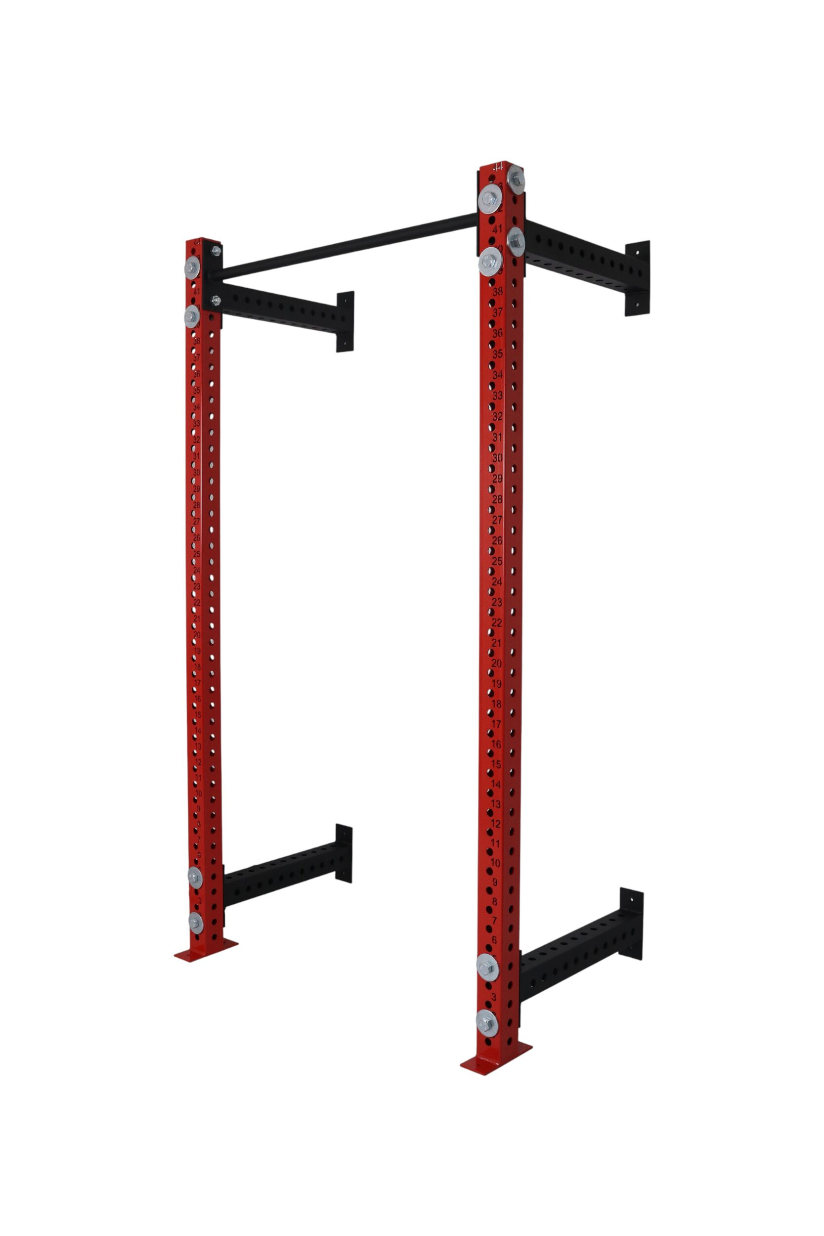 Seria PRO to w pełni wyposażone klatki treningowe klasy premium wykonane z profili 80x80x3 mm, z akcesoriami w wersjach PRO. Cztery bardzo solidne punkty mocowania do ściany zapewniają wysoką stabilność konstrukcji bez konieczności przytwierdzania klatki do podłogi. To idealne rozwiązanie dla osób, które nie chcą ingerować w posadzkę. Wall rack w tej konfiguracji pozwala zaoszczędzić miejsce, a jednocześnie zachowuje pełną funkcjonalność klasycznego racka treningowego. Otwory wypalane laserowo z numeracją, rozmieszczone co 50 mm, umożliwiają precyzyjną regulację i dopasowanie do każdego użytkownika.