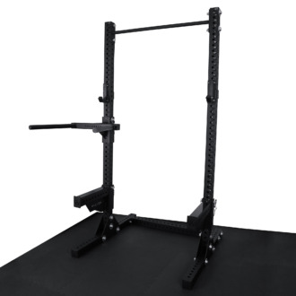 Seria PRO to w pełni wyposażone klatki treningowe klasy premium wykonane z profili 80x80x3 mm, z akcesoriami w wersjach PRO. Konstrukcja oparta na sześciu szerokich i masywnych trapezach oraz zastosowanie śrub M20 zapewniają maksymalną stabilność i wytrzymałość. Otwory wypalane laserowo z numeracją, rozmieszczone co 50 mm, umożliwiają precyzyjną regulację i dopasowanie do każdego użytkownika. Tylne pionowe profile umożliwiają łatwy montaż dodatkowych akcesoriów, takich jak tuleje na obciążenia