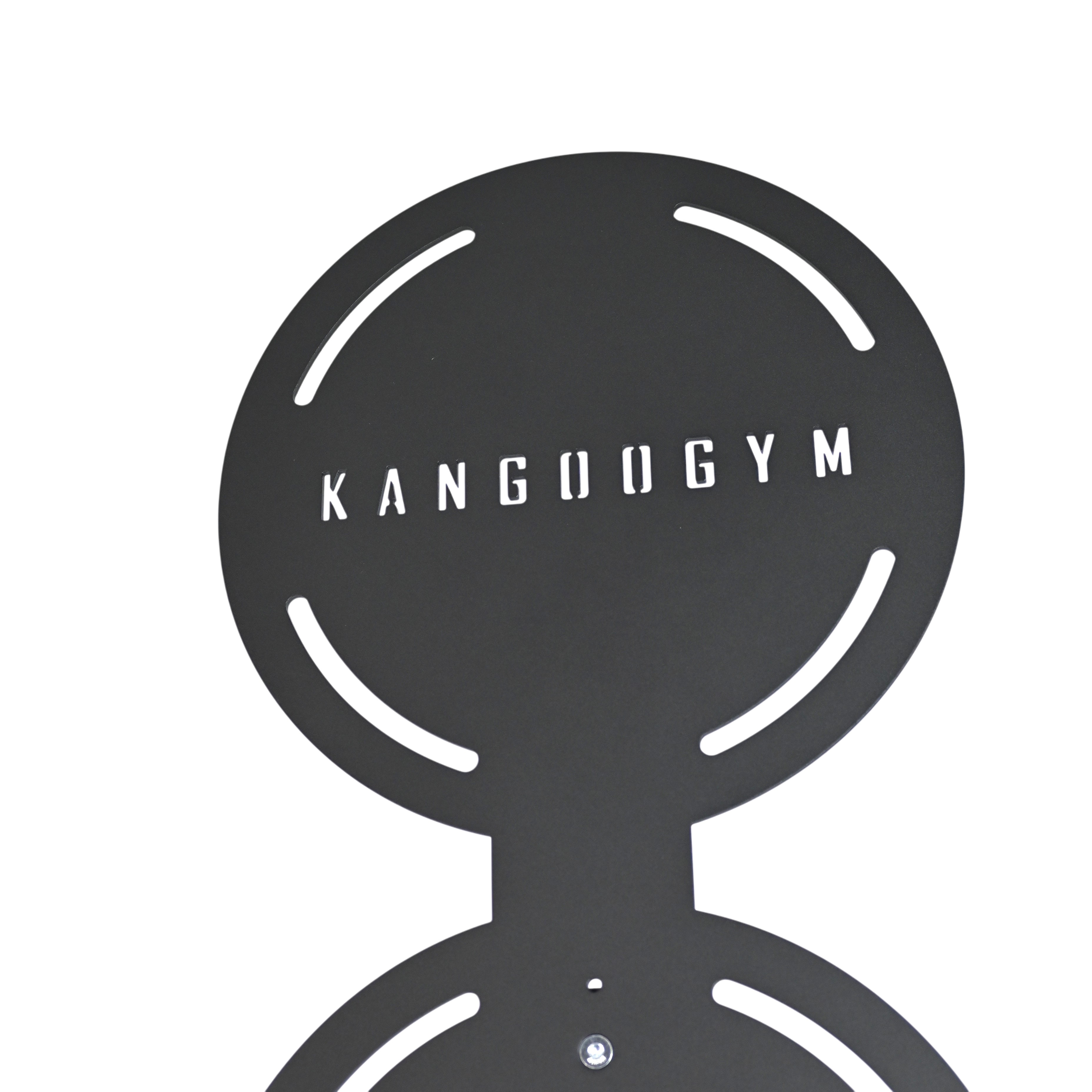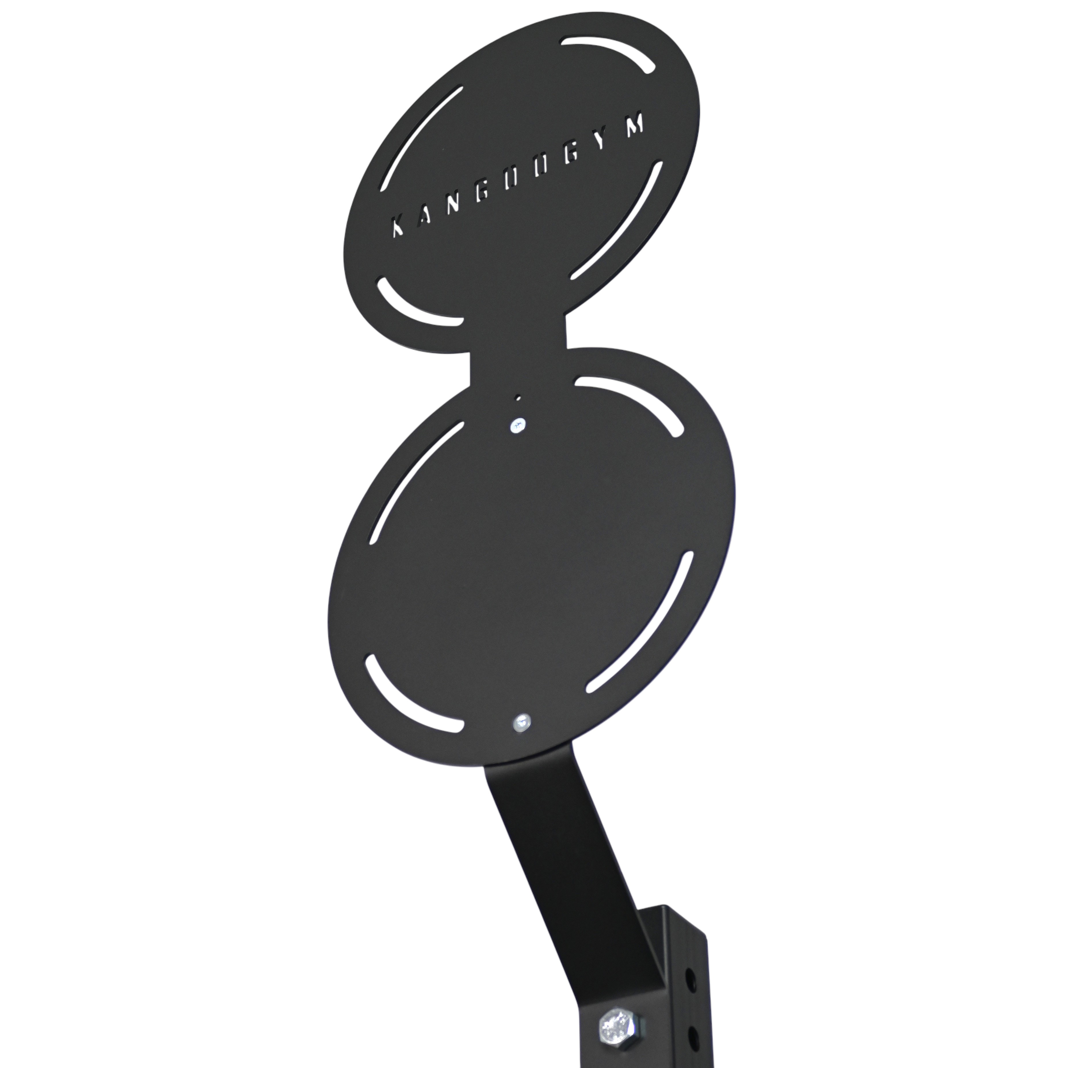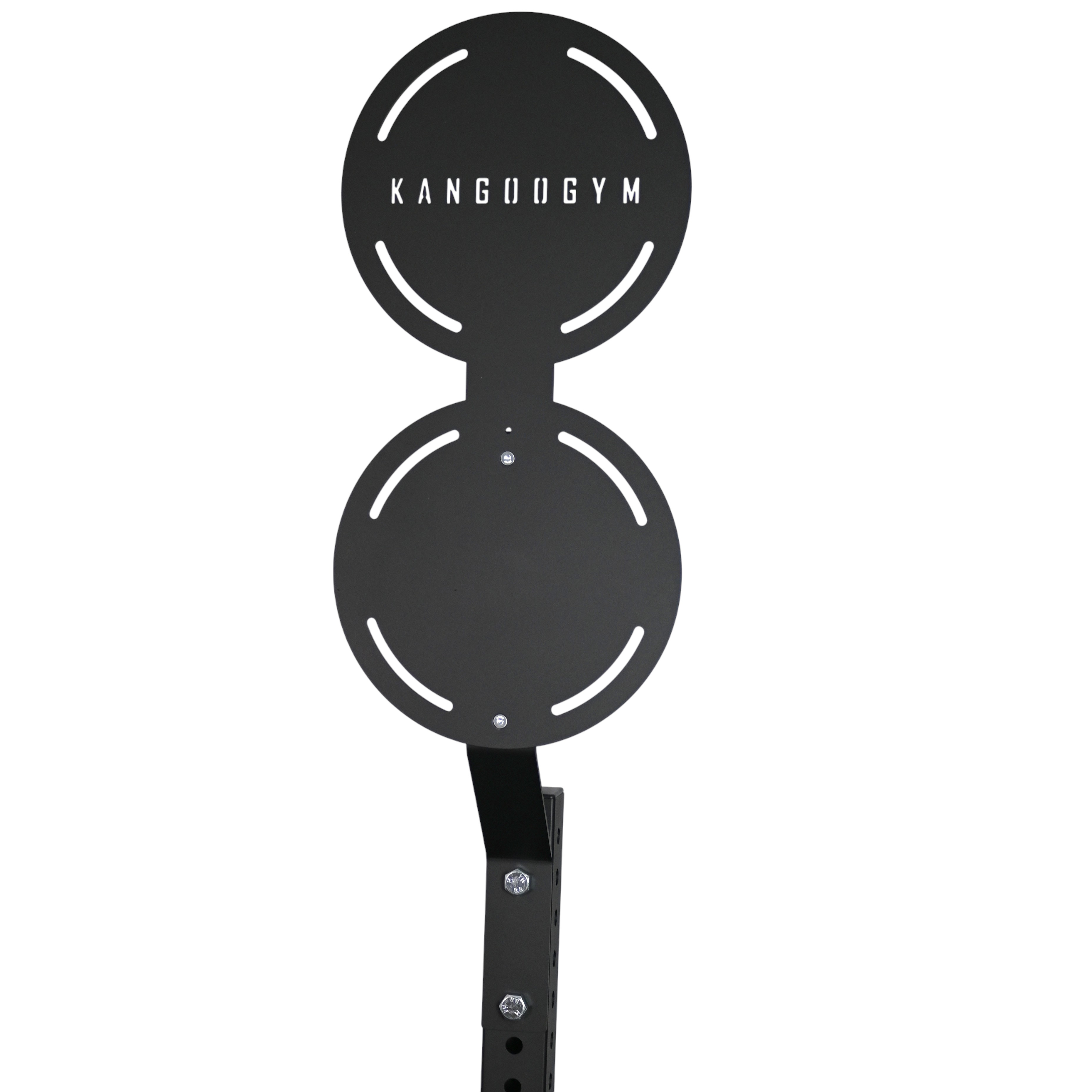 Podwójna tarcza wall ball do rzucania piłką z możliwością montażu do klatki treningowej.