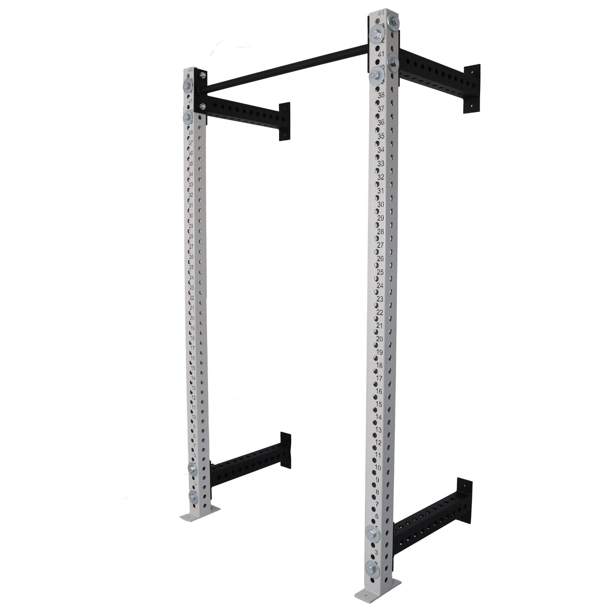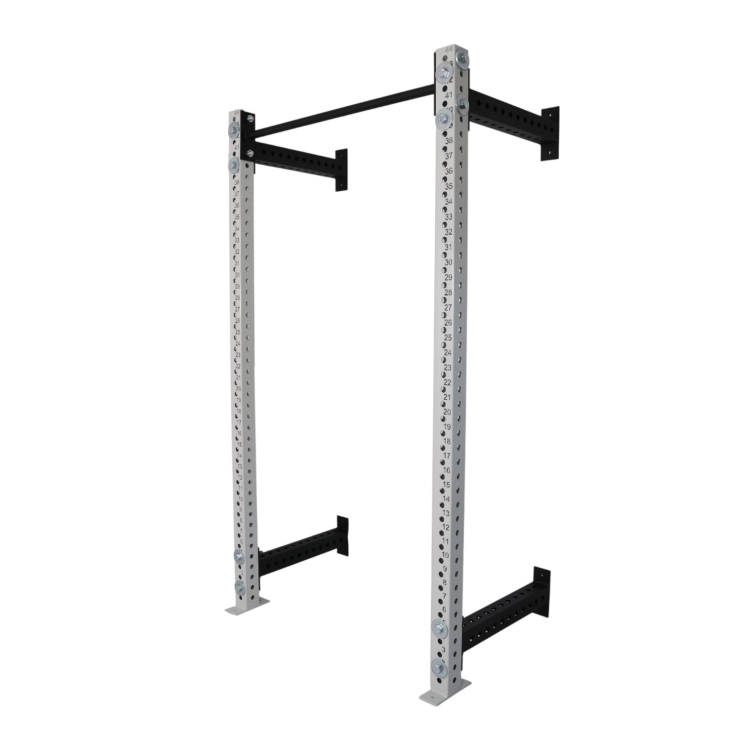 Otwory w konstrukcji są wypalane laserowo co 50 mm, co daje bardzo szerokie możliwości regulacji i dopasowania wysokości akcesoriów do każdego ćwiczenia. Cztery solidne punkty mocowania do ściany zapewniają wysoką stabilność konstrukcji bez konieczności przytwierdzania klatki do podłogi. To idealne rozwiązanie dla osób, które nie chcą ingerować w posadzkę lub nie mają takiej możliwości.