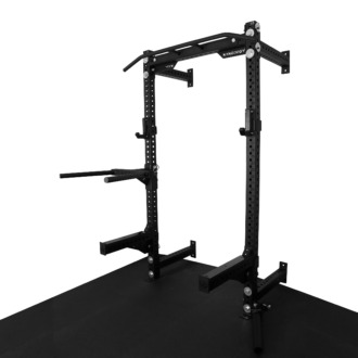 Otwory w konstrukcji są wypalane laserowo co 50 mm, co daje bardzo szerokie możliwości regulacji i dopasowania wysokości akcesoriów do każdego ćwiczenia. Klatka umożliwia łatwe mocowanie akcesoriów, co sprawia, że trening staje się jeszcze bardziej efektywny. Solidna konstrukcja, mocowana do ściany i podłogi gwarantuje stabilność.