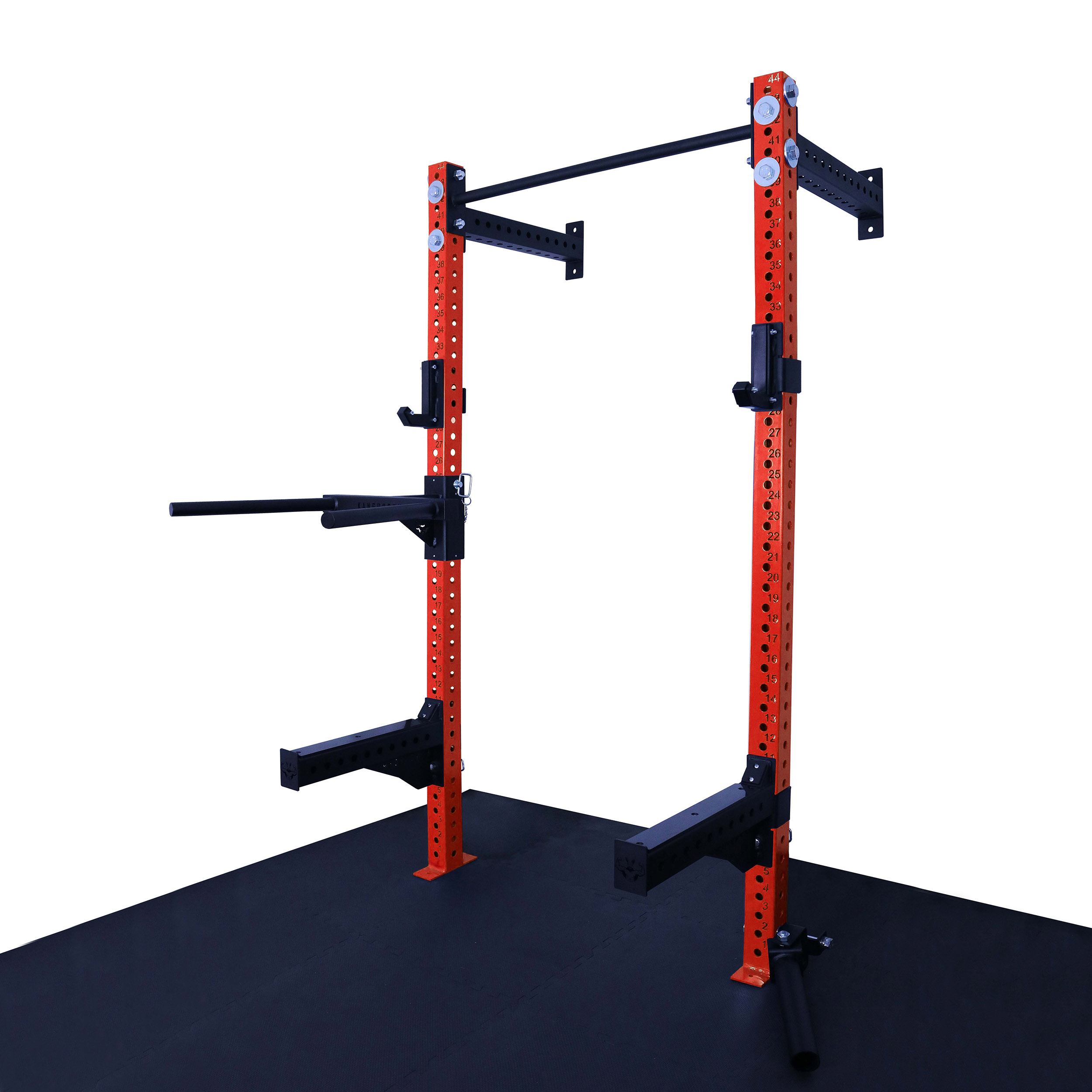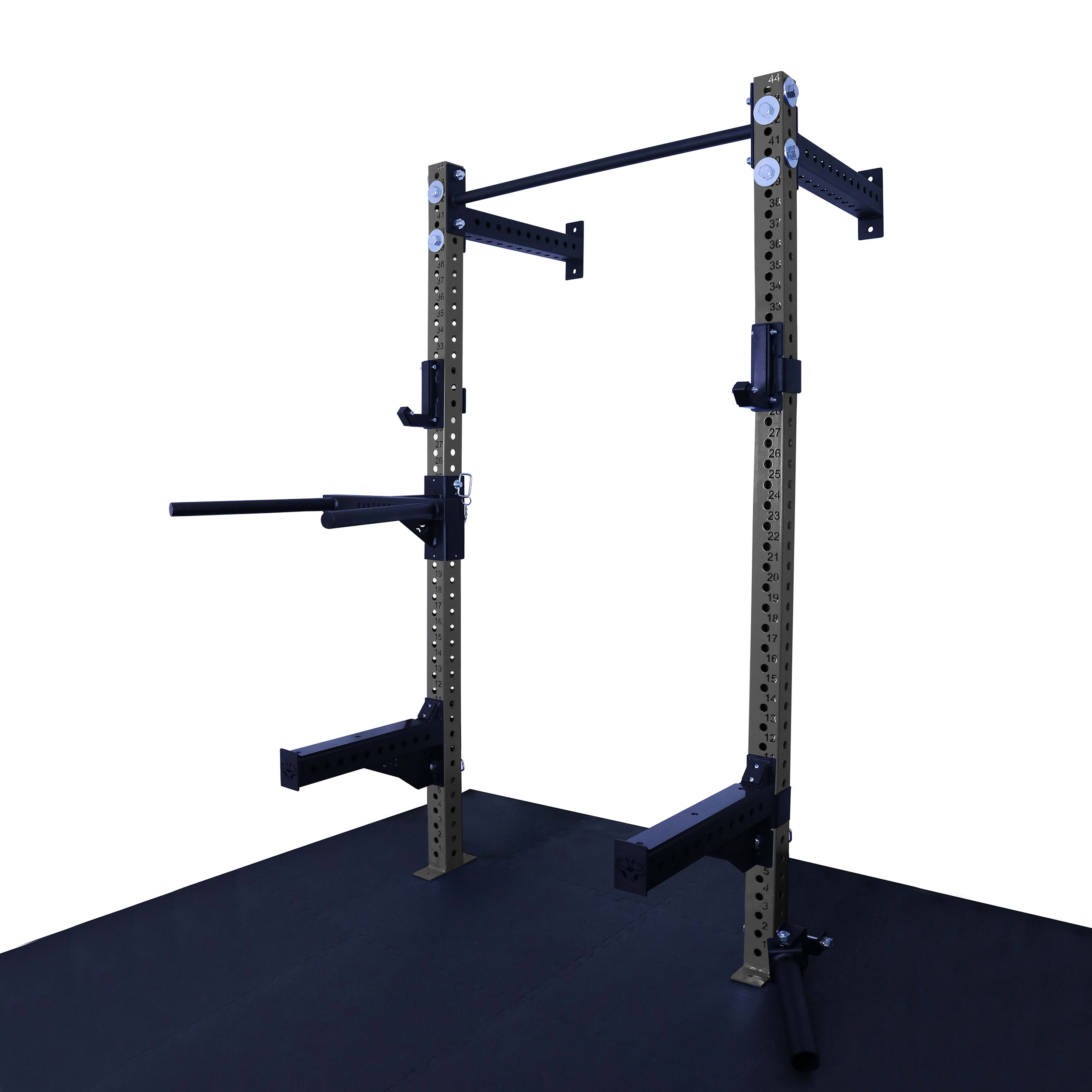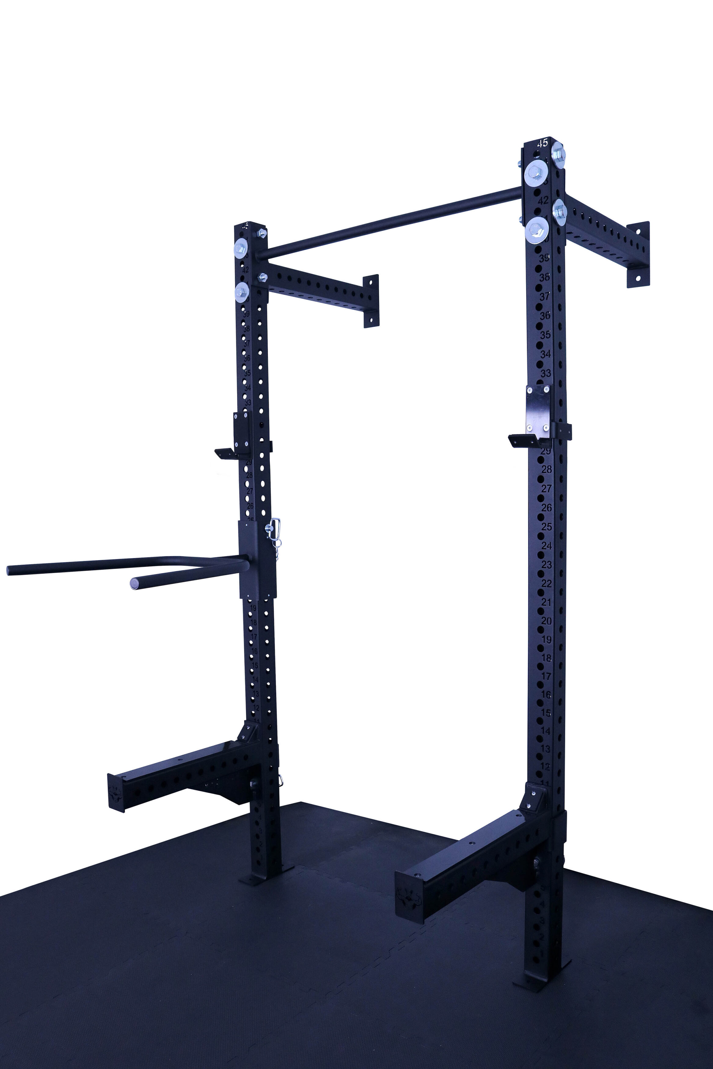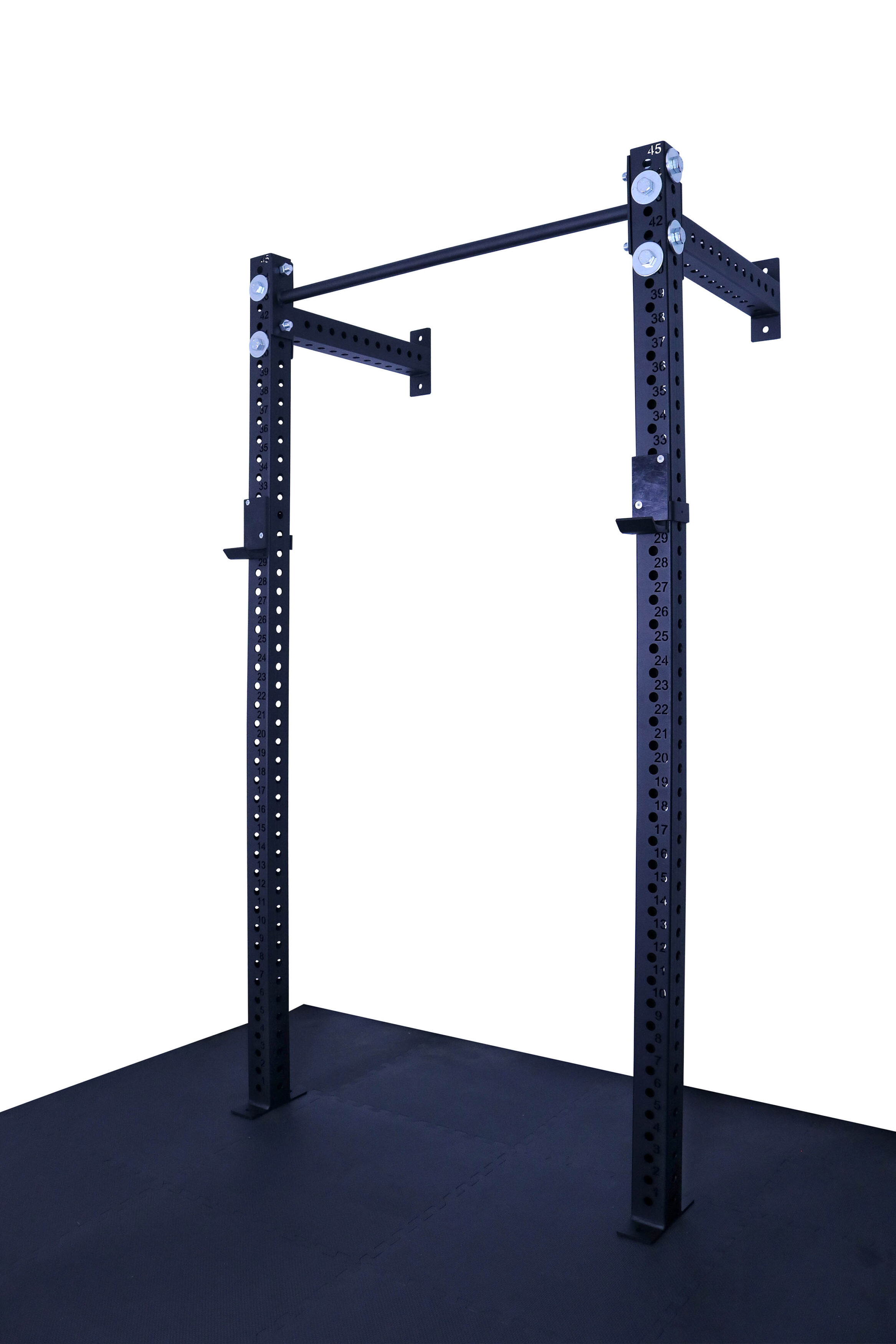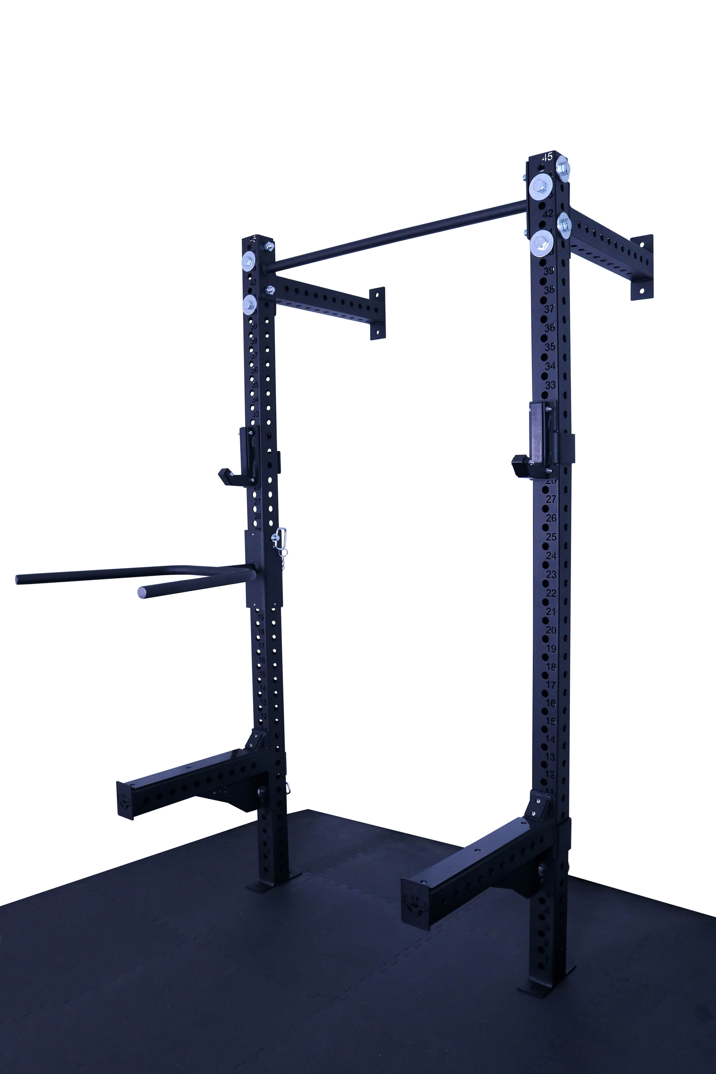 Otwory w konstrukcji są wypalane laserowo co 50 mm, co daje bardzo szerokie możliwości regulacji i dopasowania wysokości akcesoriów do każdego ćwiczenia. Klatka umożliwia łatwe mocowanie akcesoriów, co sprawia, że trening staje się jeszcze bardziej efektywny. Solidna konstrukcja, mocowana do ściany i podłogi gwarantuje stabilność.
